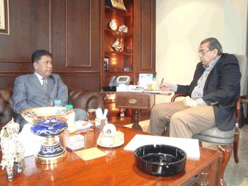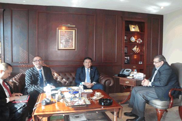 رئيس غرفة تجارة الاردن نائل الكباريتي مع سعادة السيد تغوه واردويو السفير الاندونيسي في الاردن والوفد المرافق له بحضور السيد سلامة الجبالي عضو مجلس ادارة الغرفة |