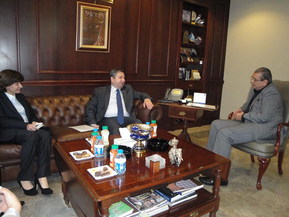 بحث رئيس غرفة تجارة الأردن نائل الكباريتي مع السفير التركي في عمان سادات أونال والملحق التجاري في السفارة التركية السيدة نيل غوكتشا مساء يوم الثلاثاء 8/3/2016 بمقر الغرفة الترتيبات المتعلقة بالزيارة المرتقبة للوفد الاقتصادي المرافق لرئيس الوزراء التركي أحمد داوود أوغلو.